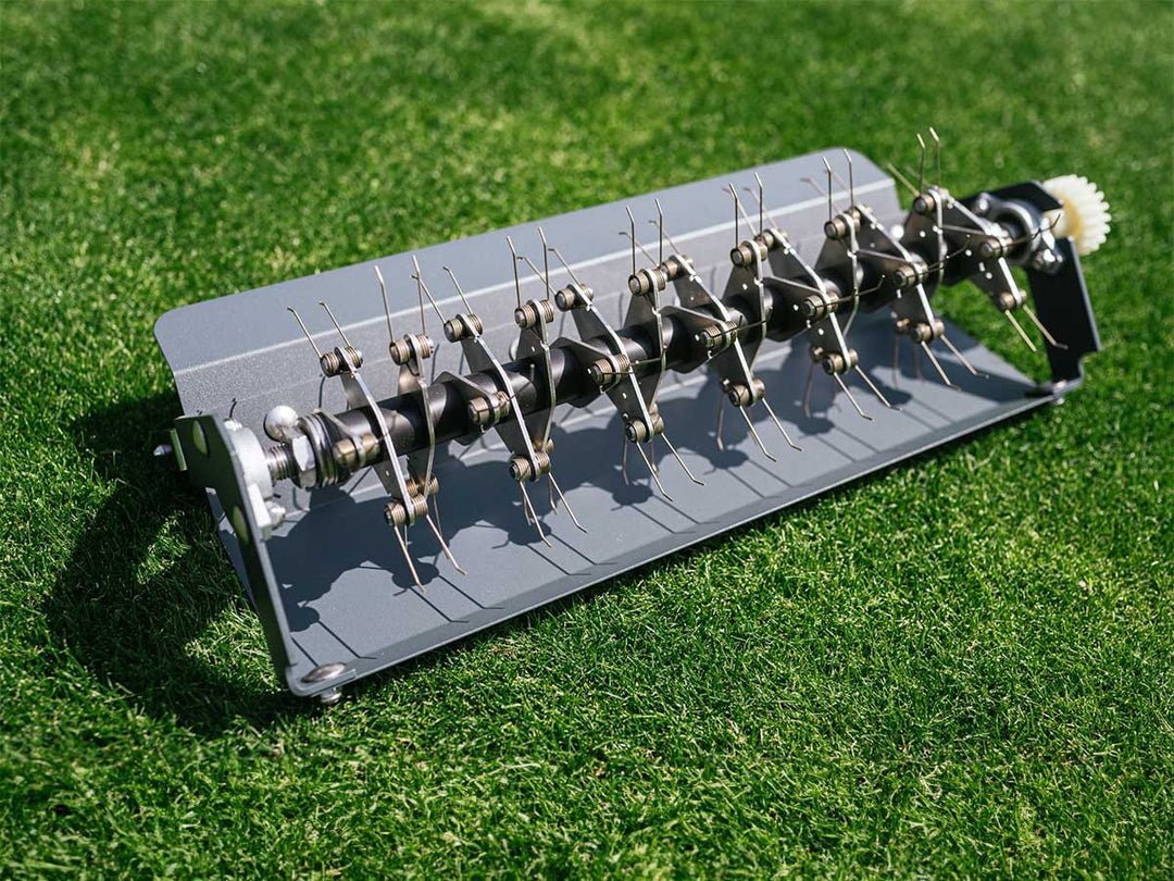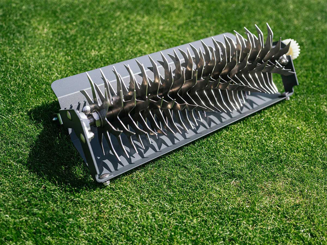 La cassette de brosses de l'aérateur de pelouse est composée de brosses rotatives qui ameublissent la pelouse et éliminent les matériaux de surface (mousse, chaume). Cela favorise l’aération du sol et améliore sa structure. Il prend également en charge ce que l'on appelle le top dressing.