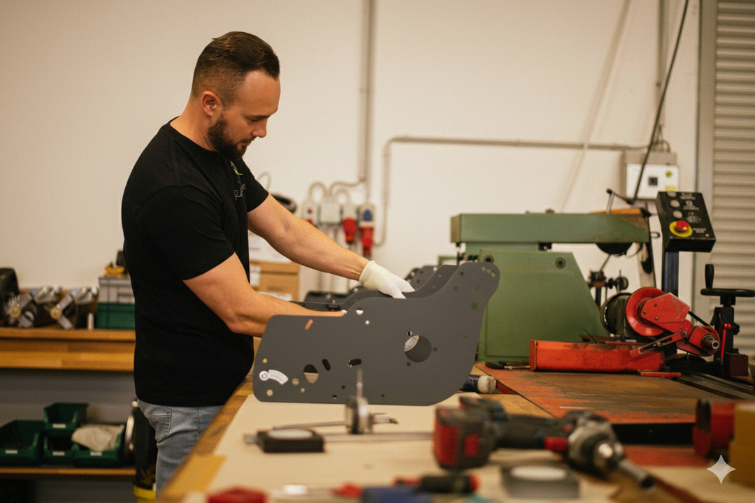 Das ist unsere Antwort auf die Wegwerfmentalität: Wir produzieren nicht für eine Saison, sondern für Generationen. Jeder Falkenstein ist das Ergebnis unserer Manufaktur-Philosophie. Das bedeutet, wir fertigen jeden Mäher von Hand in unserer Werkstatt. Es ist kein Massenprodukt, sondern ein Werkzeug, das mit höchster Sorgfalt entsteht.